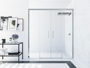Doble asa de 300 mm. de diseño exclusivo. - Mampara sin perfil guía inferior.