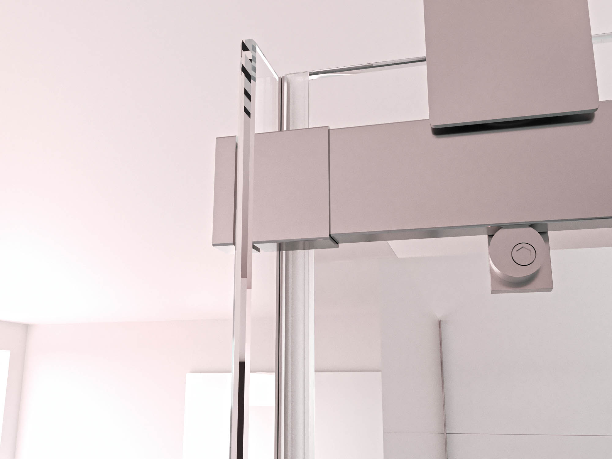• Sistema de rodamientos aéreos cuadrados en acero inoxidable con tope antidescuelgue integrados.